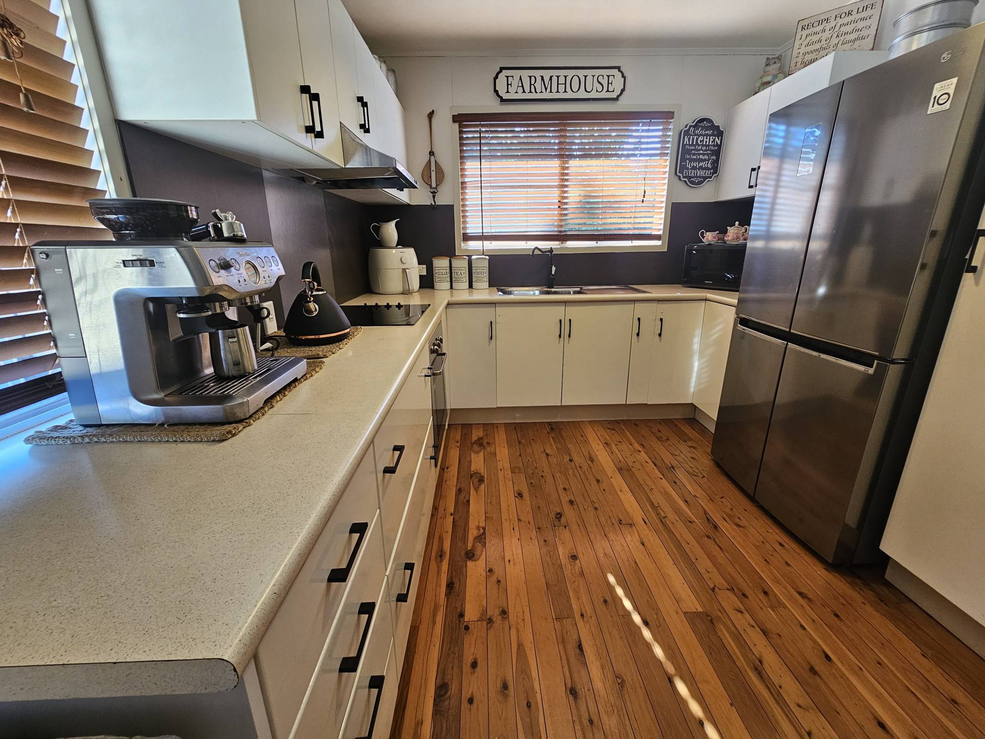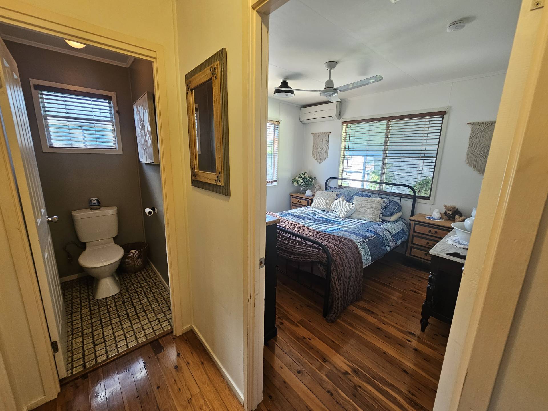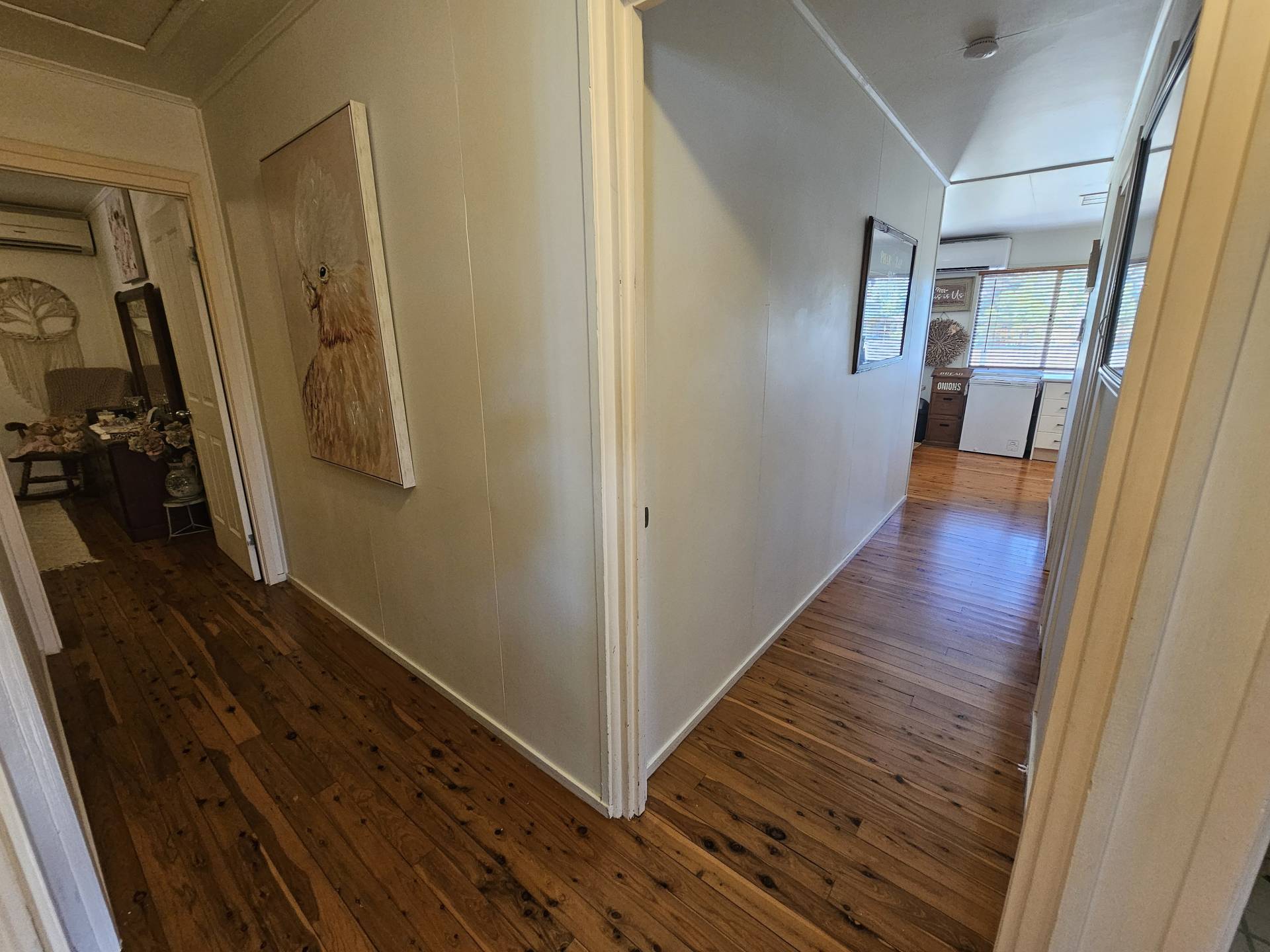 This recently painted, air-conditioned three bedroom house sits on a 814m² (approx) corner block on the outskirts of town. Inside you'll find a spacious kitchen, open plan living and dining, good sized bedrooms - all with bic's - a neat, upfated bathroom and updated laundry. Gorgeous polished floor boards accentuates the overall picture.
