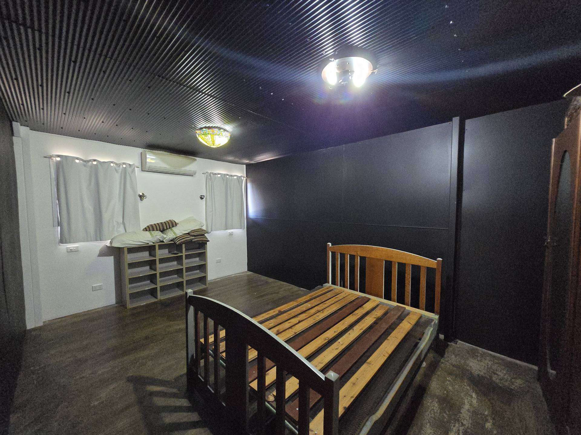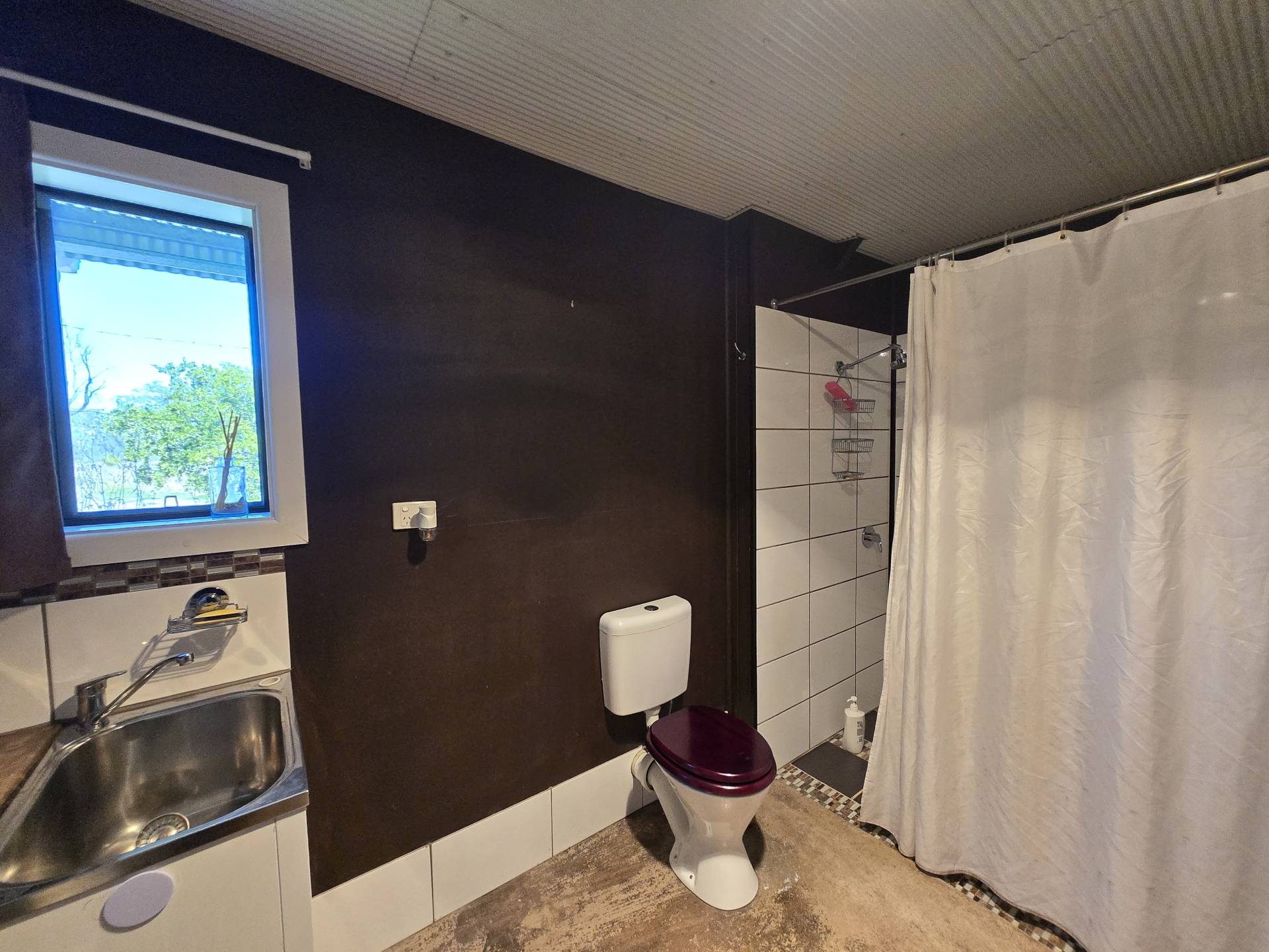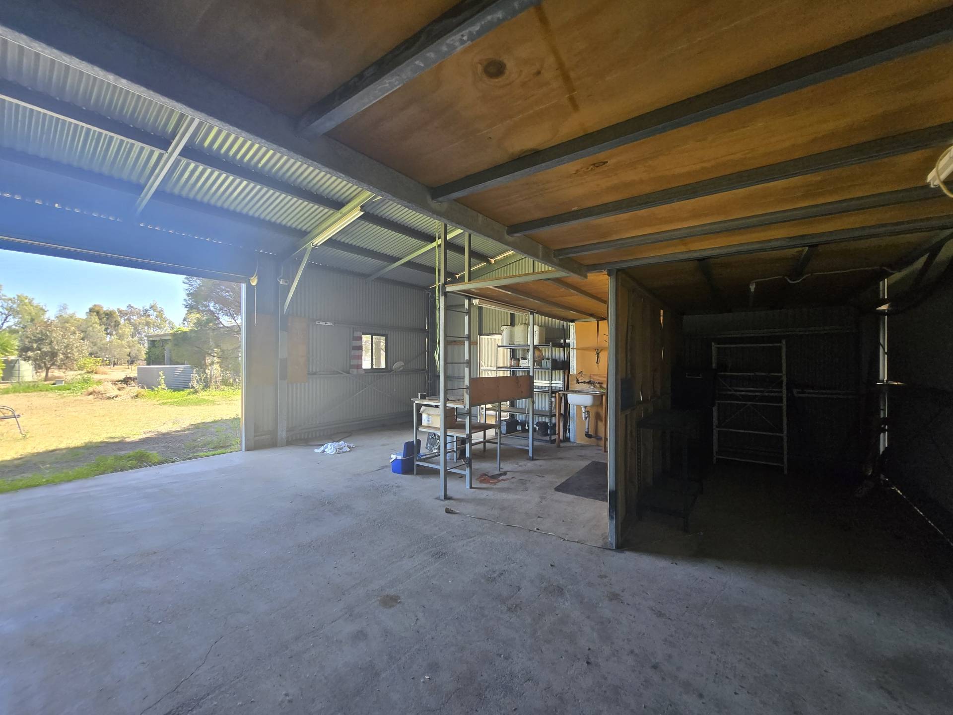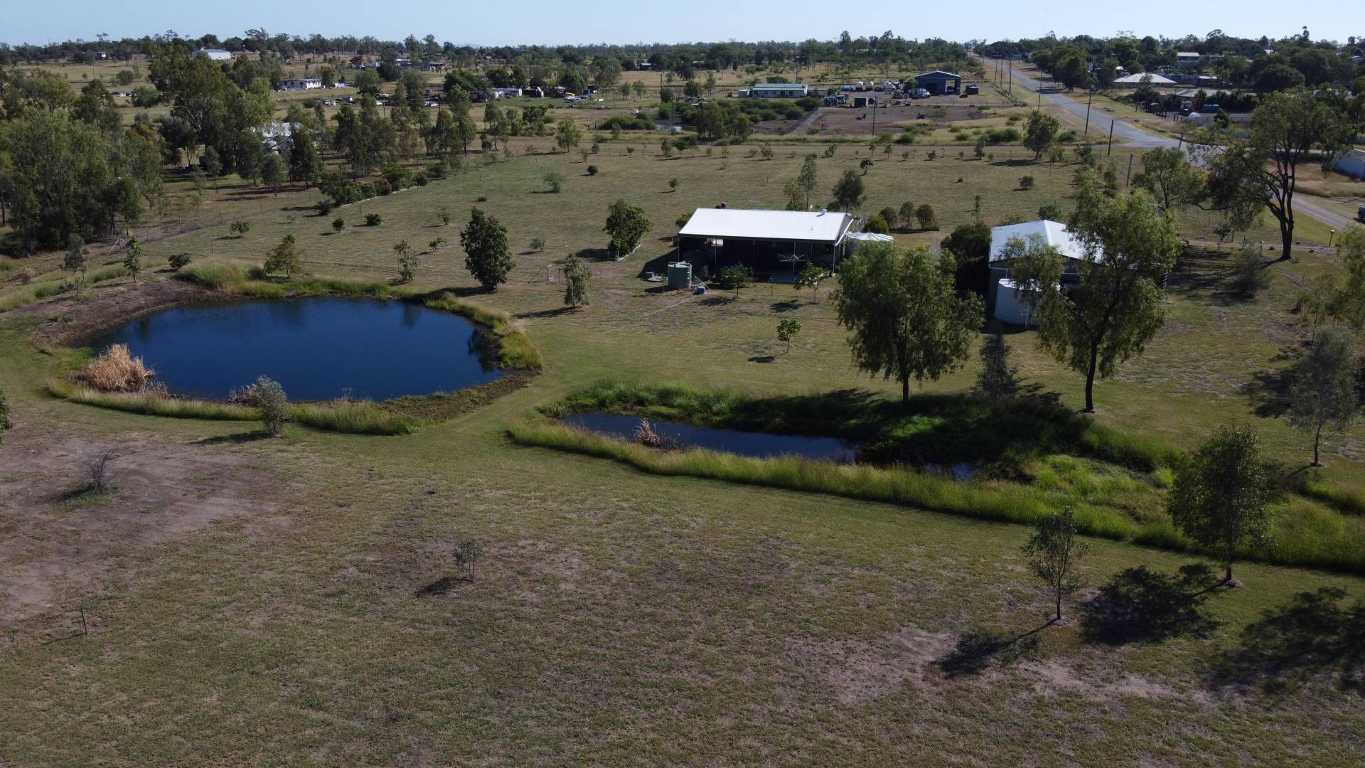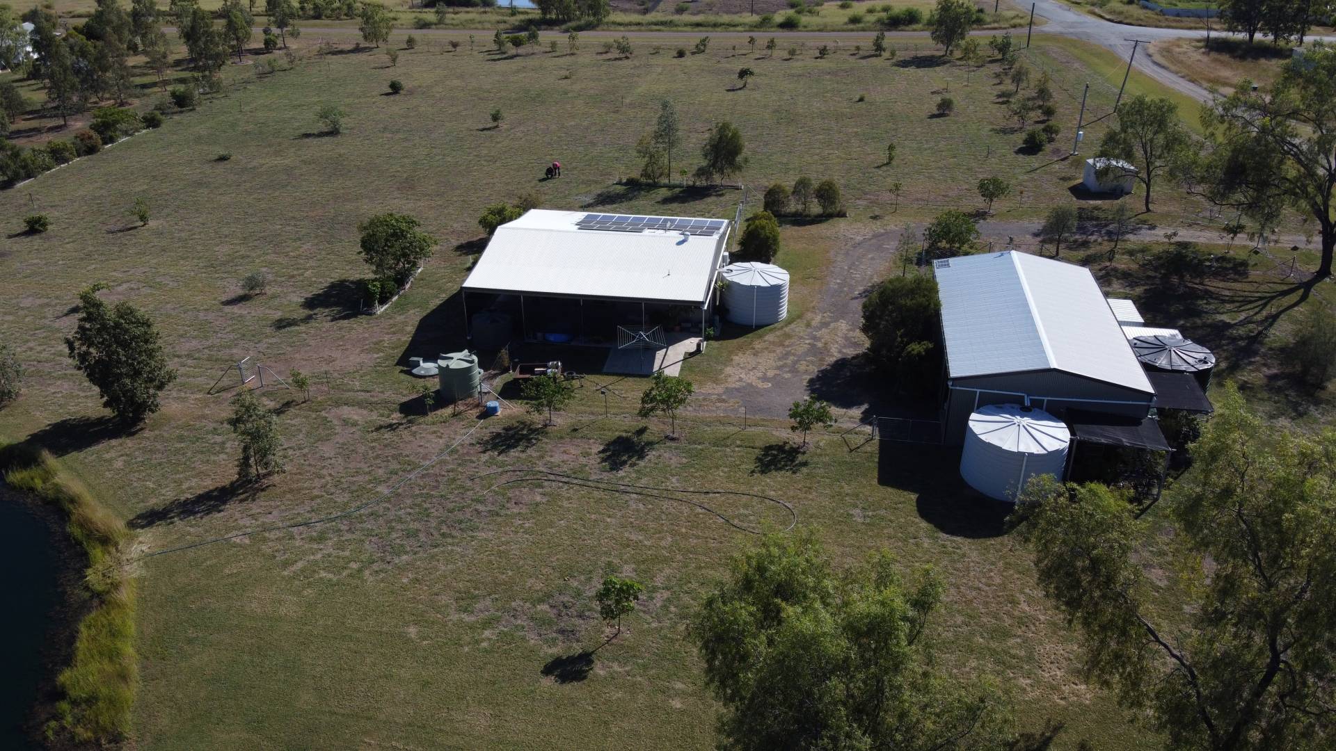 On the edge of town in a quiet spot, sits this 5 Acre block of bliss.  It features a workshop/shed with carport attached, a garden shed and an air conditioned shouse (shed house).  There are 3 water tanks, a dam, and also town water.  The bathroom is combined with the laundry and has heaps of cupboard space.  The solar panels will bring you closer to off-grid living.